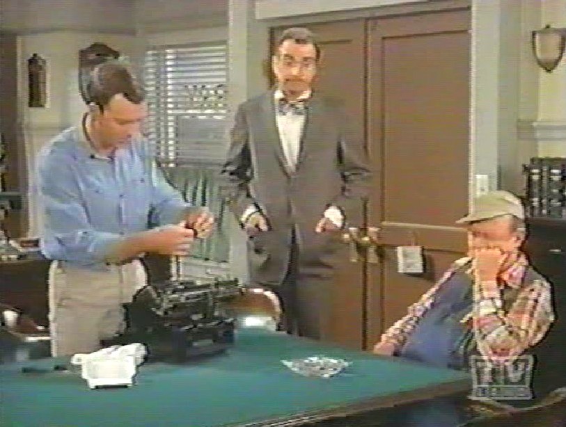 Then Aunt Bee says to Howard, "Sergeant Shaw, pick up the pistol and shoot the repairman."